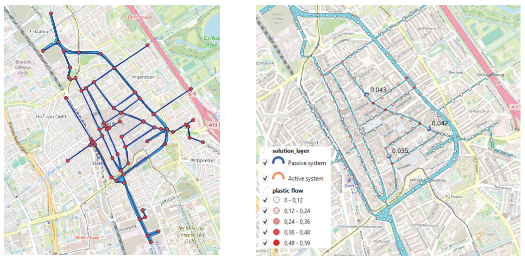 Luckily, Anne-Fleur was able to overcome this difference. She also incorporated more aspects than just economic ones: "We adapted the existing model from the literature by adding two aspects: the ability to designate a ‘sensitive area,’ and the ability to use multiple types of collection locations (capture systems). In this context, a sensitive area means that it is particularly important to remove plastic waste from the water in that location. Examples include a nature reserve, or an area where the water (and thus the plastic waste) is moving closer to the sea. The model also incorporates the different characteristics of the two types of capture systems, such as purchase costs and possible restrictions on where they can be installed, for instance due to their size or the lack of power supply for the active system."